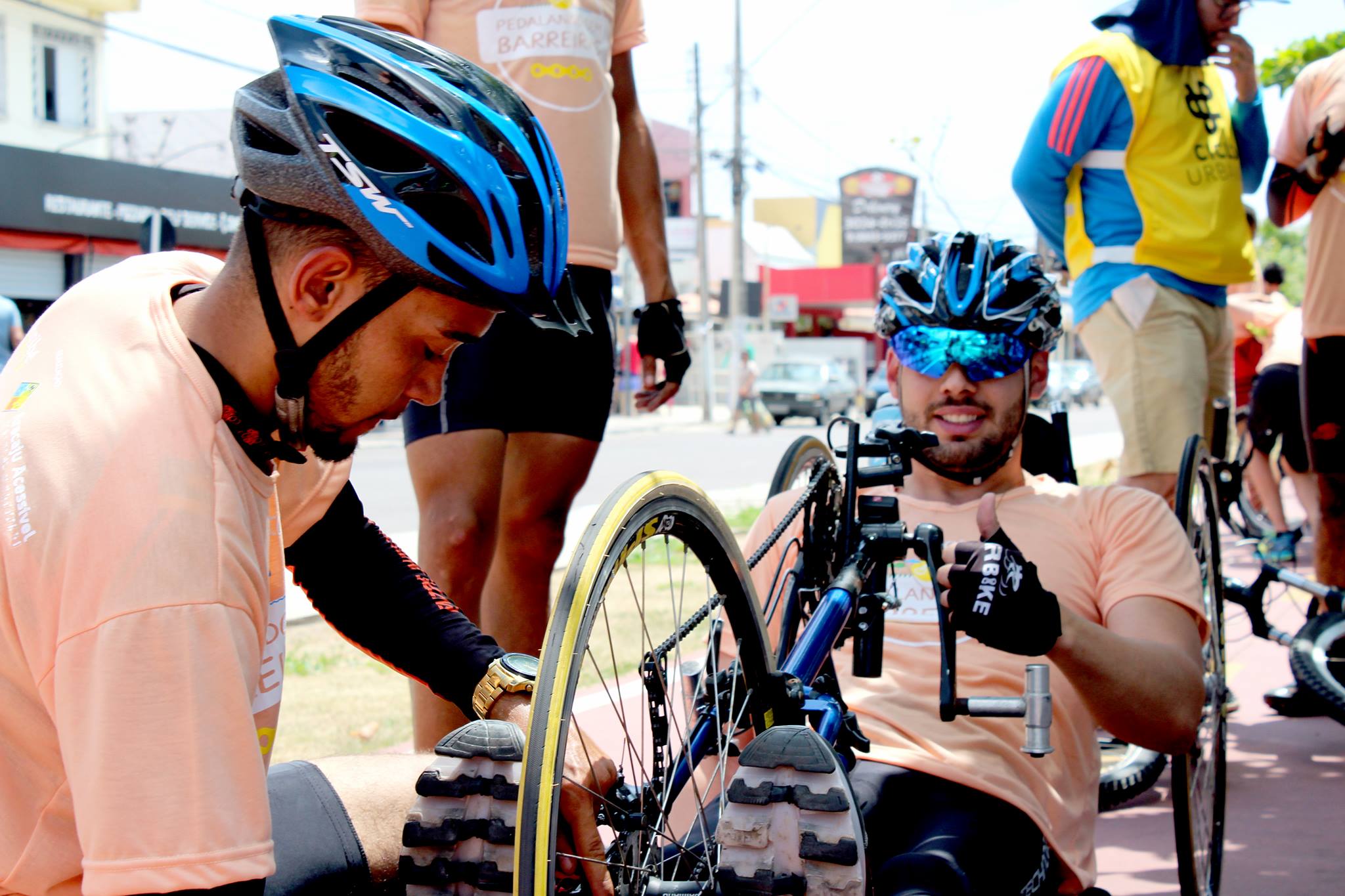 Thiago Massas e Felipe pedalam triciclo agrupado